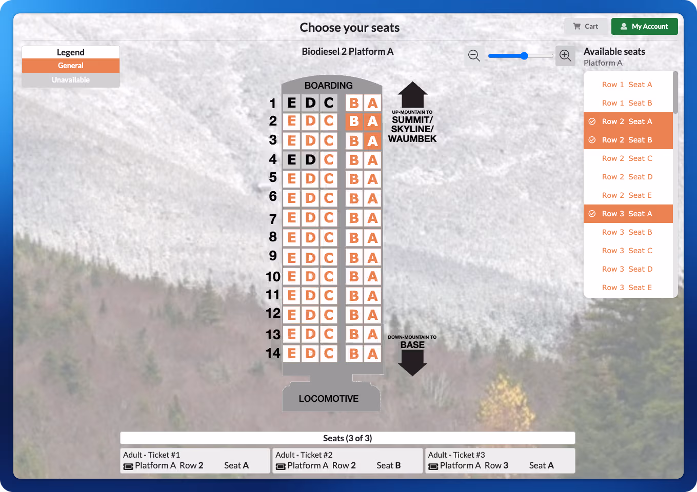They should be able to. Look for a platform with a custom seatmap builder that lets you configure coach-by-coach layouts to match your actual rolling stock. Guests should be able to see available seats, select their preferred position, and have accessible seating managed at the point of purchase — not handled as a separate phone call.